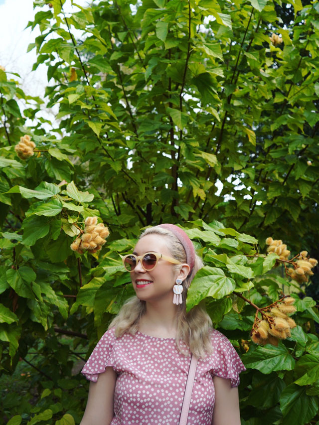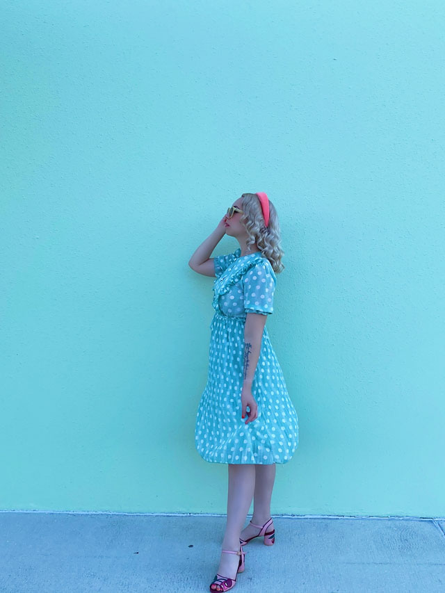 I arrived to start designing the arch pretty early, then I took my life's quickest shower in Jacque's bathroom and slipped on this peach dress I bought in Pittsburgh in 2016. I had been waiting for YEARS to finally wear this vintage 1960's dress from Three Rivers Vintage!